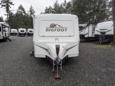The Bigfoot 2500 Series travel trailers by Bigfoot Industries are constructed with a lightweight two piece fiberglass exterior for durability, plus high-density insulation and thermal pane windows to extend your camping season. The wide track axle provides smooth towing, and you will love how easy it is to set up camp with a power tongue jack and stabilizer jacks. Head inside to find a marine-quality fabric headliner, day/night shades, washable vinyl wall paneling, and stainless steel appliances. For even more comfort and convenience, choose one or more of the available options, like the roof A/C, the solar energy system, or the exterior speakers!