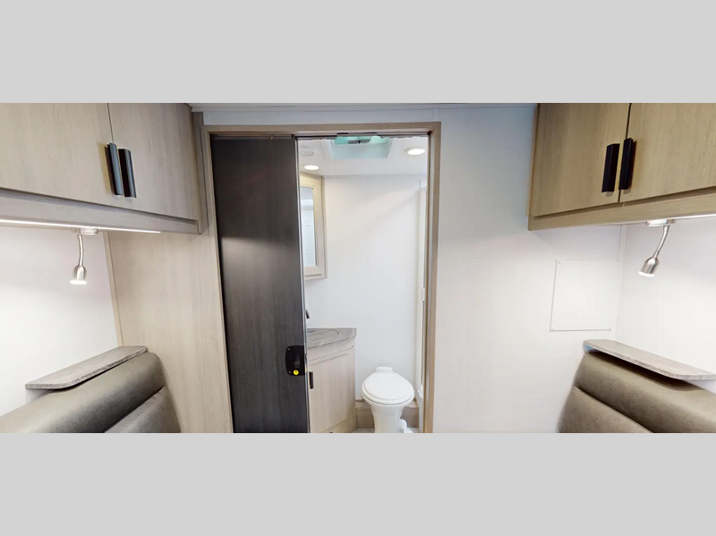 Each model features rotocast storage compartments, sleek frameless windows, and backup camera/side view cameras with a 3-way monitor for a hassle-free driving experience. You will love the swivel captain's seats, the full baths with a privacy door, no wet baths, and black out roller shades! This coach also includes a Truma Combi electric heat and high efficiency water heater, a 2.8 kW gas generator, and a 10" touch screen CarPlay/Android radio with USB and Bluetooth!