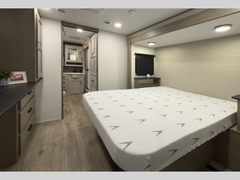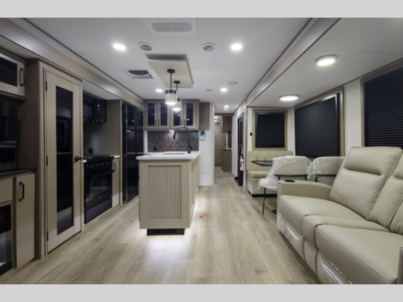 Sleeps 5 Slides 2 Length 35 ft 5 in Ext Width 8 ft Ext Height 11 ft 11 in Hitch Weight 1145 lbs GVWR 10995 lbs Dry Weight 9518 lbs Fresh Water Capacity 55 gals Grey Water Capacity 78 gals Black Water Capacity 39 gals Tire Size ST225/75R15LRE Furnace BTU 35000 btu Available Beds Queen Refrigerator Type 12V Refrigerator Size 16 cu ft Cooktop Burners 3 Shower Size 30" x 48" Number of Awnings 1 LP Tank Capacity 30 lbs Water Heater Type On Demand Tankless AC BTU 28500 btu TV Info LR 40" LED HDTV Awning Info 12' One-Touch Electric LED Axle Count 2 Washer/Dryer Available Yes Number of LP Tanks 2 Shower Type Standard Electrical Service 50 amp Solar Wattage 180 watts Similar Floorplans