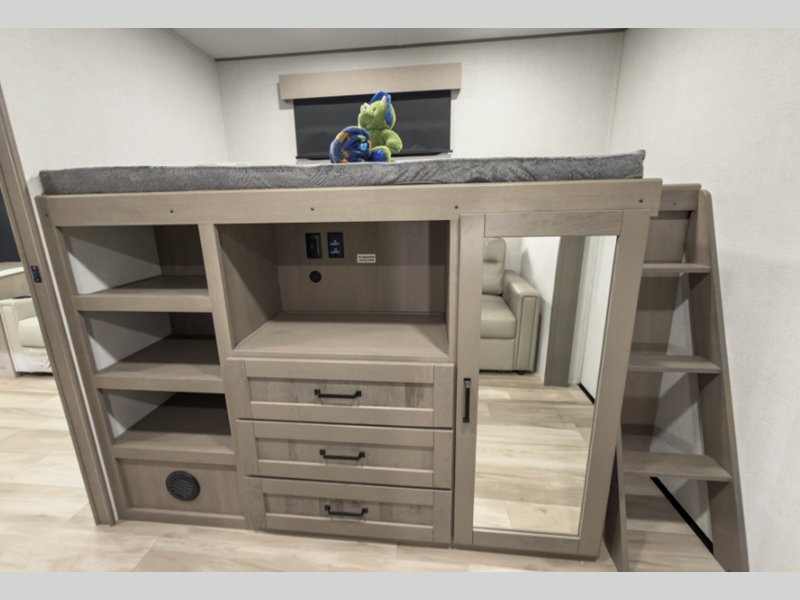 Sleeps 7 Slides 3 Length 37 ft 9 in Ext Width 8 ft Ext Height 11 ft 11 in Int Height 0 ft Hitch Weight 1140 lbs GVWR 11295 lbs Dry Weight 10300 lbs Fresh Water Capacity 54 gals Grey Water Capacity 86 gals Black Water Capacity 43 gals Tire Size ST235/80R16RLE Furnace BTU 35000 btu Number Of Bunks 2 Available Beds Queen Refrigerator Type 12V Refrigerator Size 16 cu ft Cooktop Burners 3 Number of Awnings 2 LP Tank Capacity 30 lbs Water Heater Type On Demand Tankless AC BTU 15000 btu TV Info LR LED HDTV Awning Info 10' and 10' 6" One-Touch Electric LED Axle Count 2 Washer/Dryer Available Yes Number of LP Tanks 2 Shower Type Standard Electrical Service 50 amp Solar Wattage 180 watts Similar Floorplans