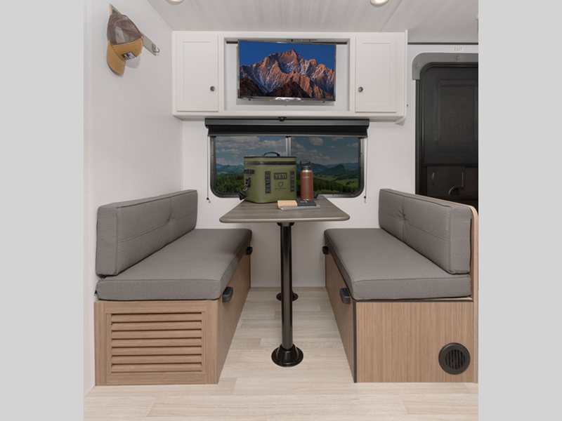 Sleeps 5 Length 21 ft 5 in Ext Height 10 ft 5 in Interior Color Cedar Frost Hitch Weight 400 lbs Dry Weight 3530 lbs Cargo Capacity 1270 lbs Fresh Water Capacity 37 gals Grey Water Capacity 30 gals Black Water Capacity 30 gals Tire Size ST235/75R15C Furnace BTU 20000 btu Number Of Bunks 2 Available Beds Queen Refrigerator Type Large Double Door 12V Refrigerator Size 8 cu ft Cooktop Burners 2 Number of Awnings 1 LP Tank Capacity 20 lbs Water Heater Type Girard Tankless AC BTU 13500 btu Axle Count 1 Number of LP Tanks 1 Shower Type Standard Similar Floorplans