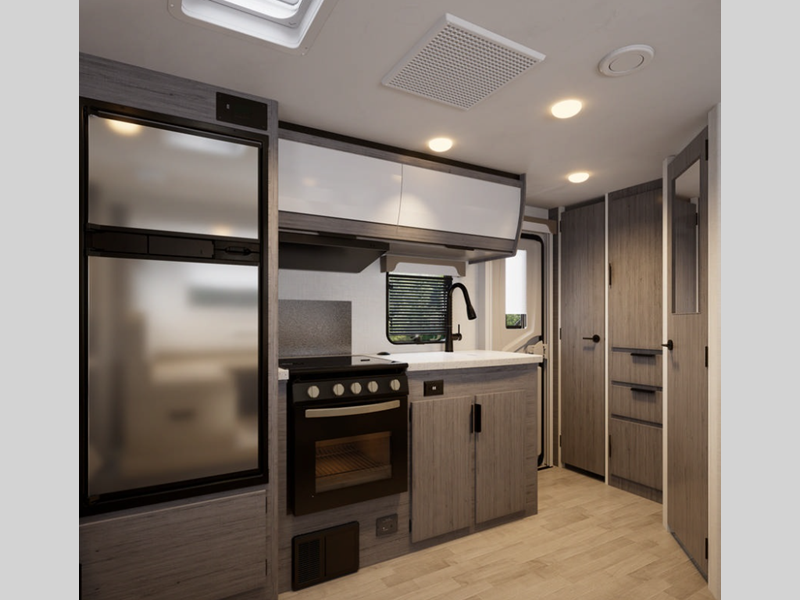 Sleeps 4 Slides 1 Length 21 ft 5 in Ext Width 8 ft 1 in Ext Height 10 ft 2 in Int Height 6 ft 8 in Interior Color Fog, Mink, Thunder Hitch Weight 550 lbs GVWR 6300 lbs Dry Weight 4225 lbs Cargo Capacity 2075 lbs Fresh Water Capacity 45 gals Grey Water Capacity 40 gals Black Water Capacity 40 gals Tire Size 205/75R15 Available Beds Queen Refrigerator Type 12V Double Door Norcold Refrigerator Size 7 cu ft Cooktop Burners 3 Number of Awnings 1 Axle Weight 3675 lbs LP Tank Capacity 5 gals Water Heater Type Truma AquaGo Axle Count 2 Number of LP Tanks 2 Shower Type Radius Similar Floorplans